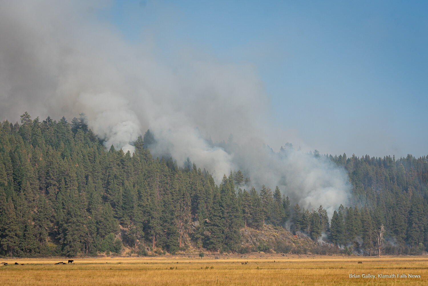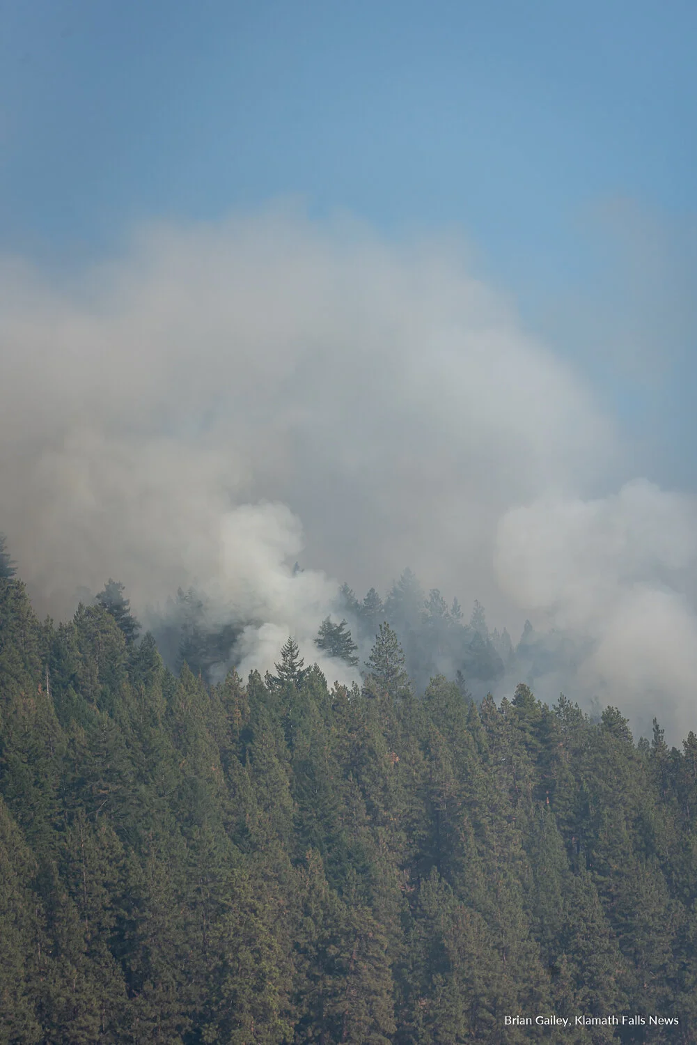 Smoke from the #242Fire is seen burining east of Highway 62 just north of the Klamath Fish Hatchery and Copeland Canyon. September 9, 2020 (Image by Brian Gailey / Klamath Falls News)