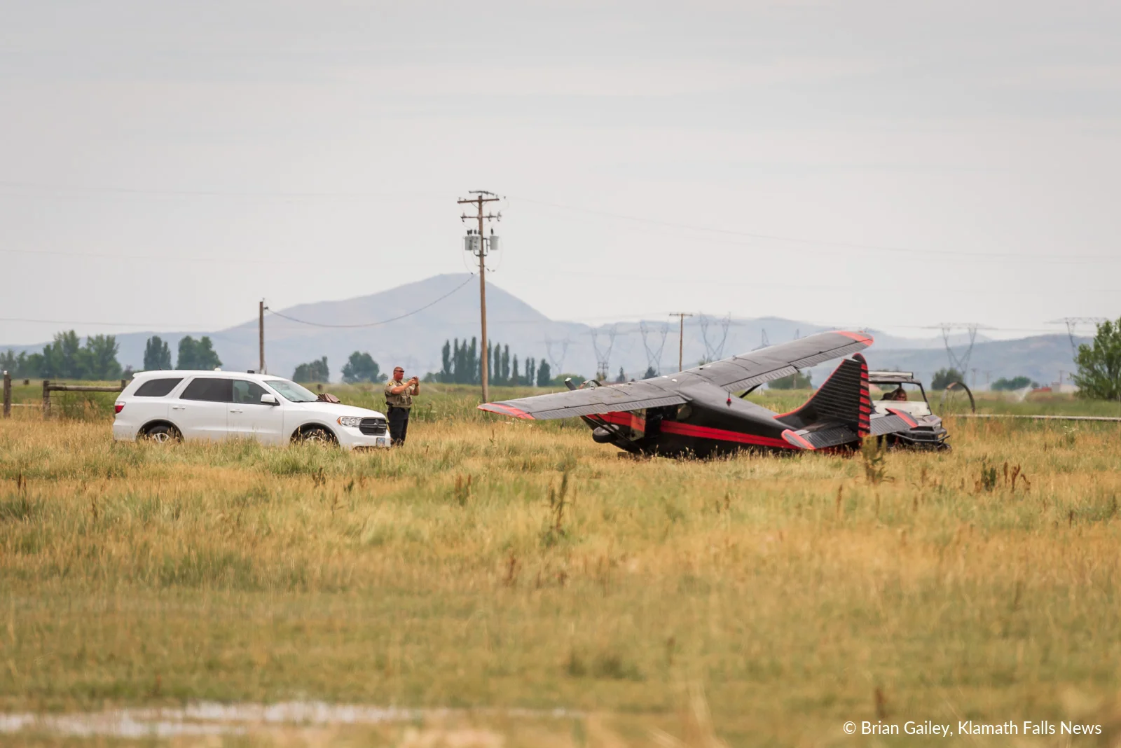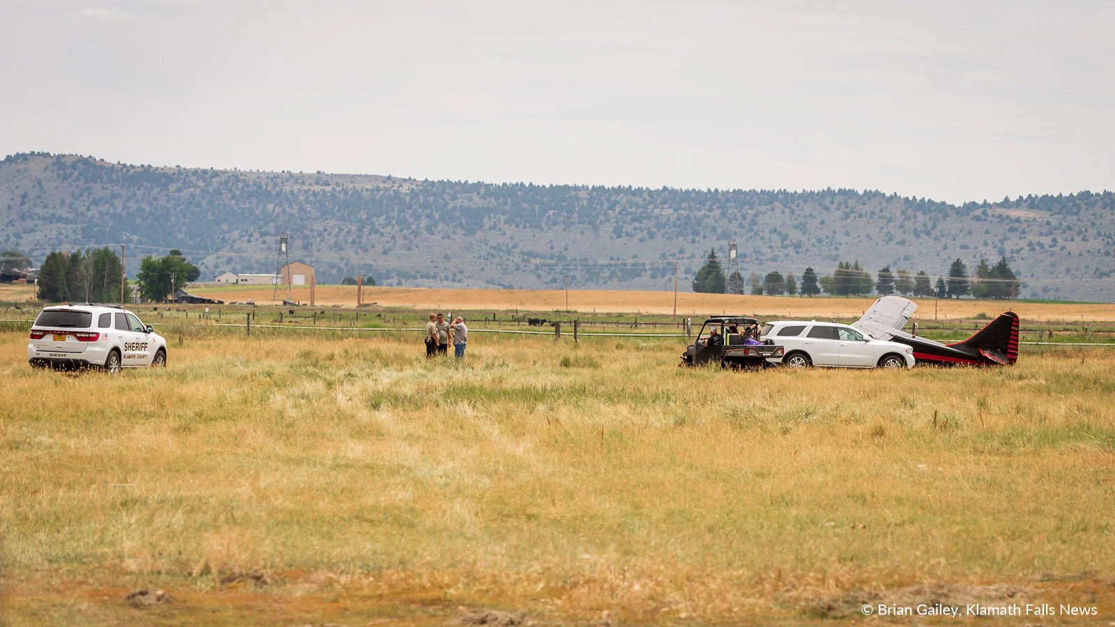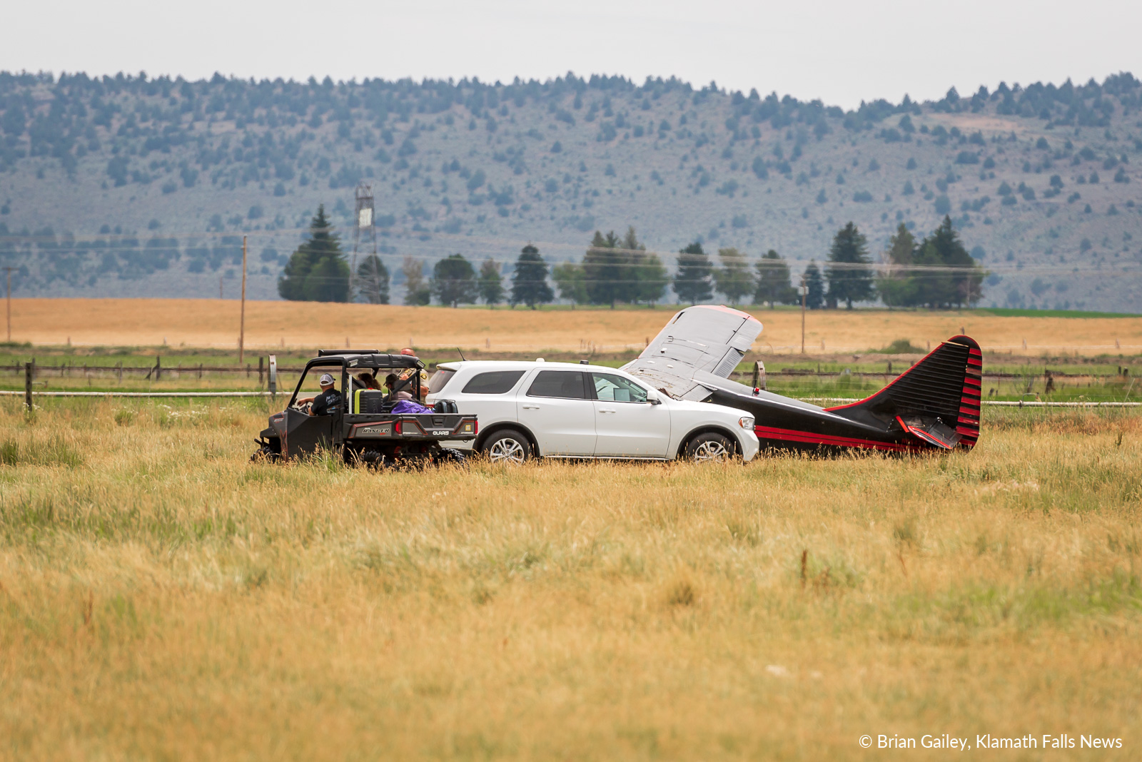 /A single engine aircraft crashed in a field south of the Crater Lake - Klamath Regional Airport Tuesday afternoon just after takeoff. July 9, 2019 (Image, Brian Gailey, Klamath Falls News)